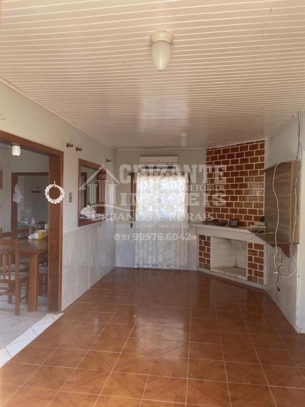 Possui 03 quartos, 02 banheiros, sala e cozinha conjugados com lareira;
